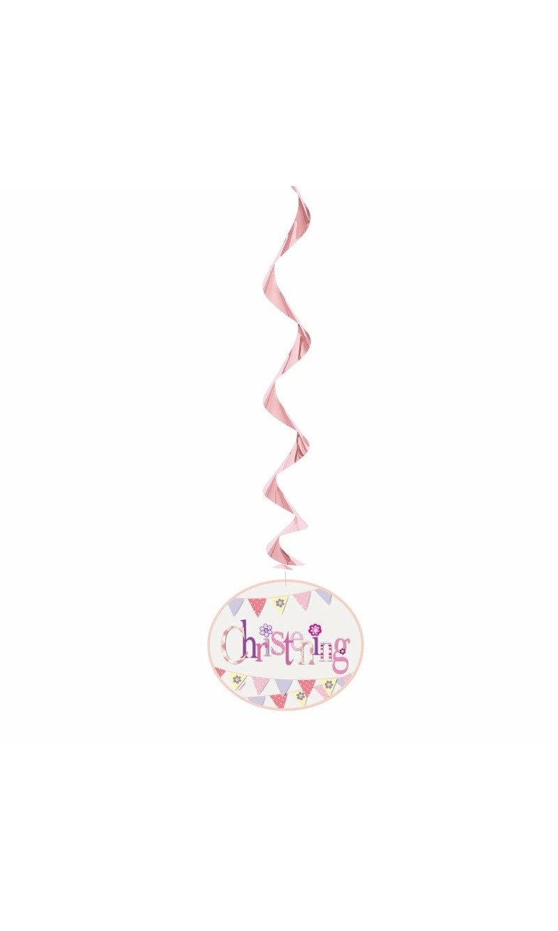 Pink Bunting Christening Hanging Swirl Decorations – 3pk