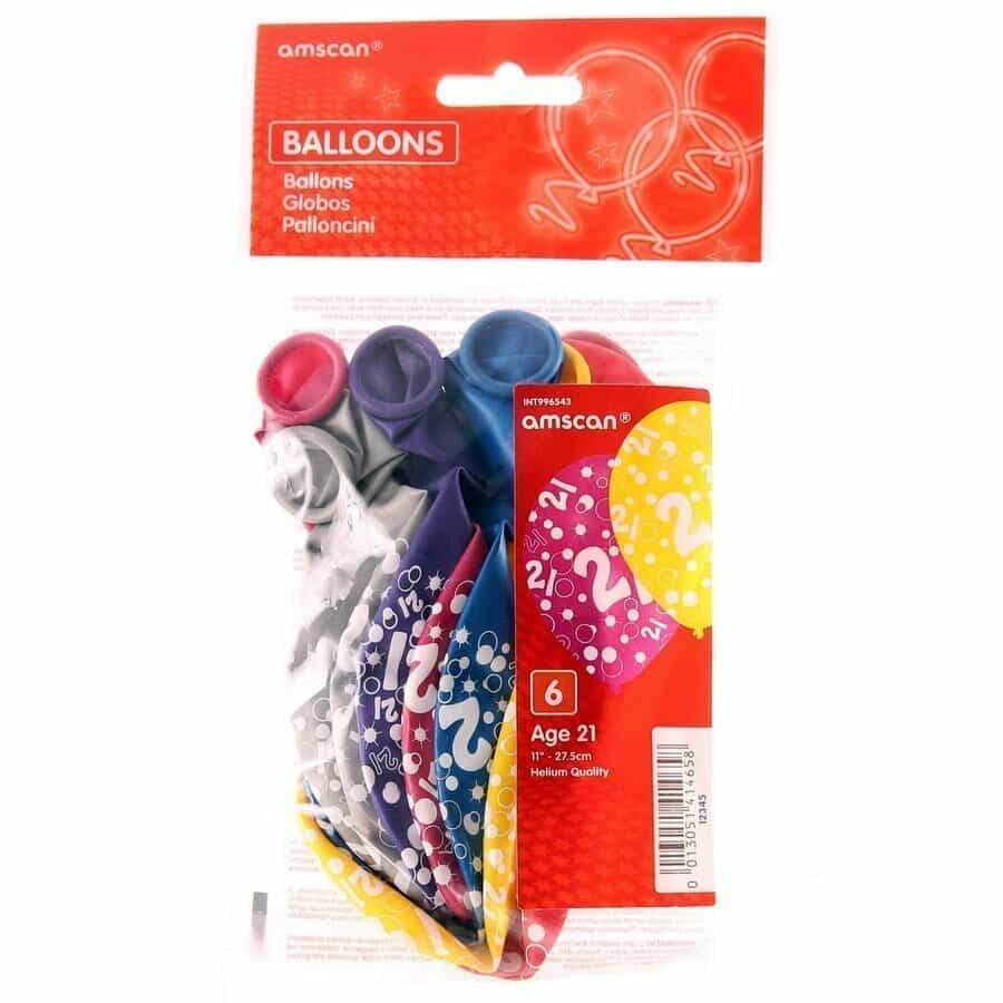 21st Birthday Assorted Printed Latex Balloons 11″ – 6pk