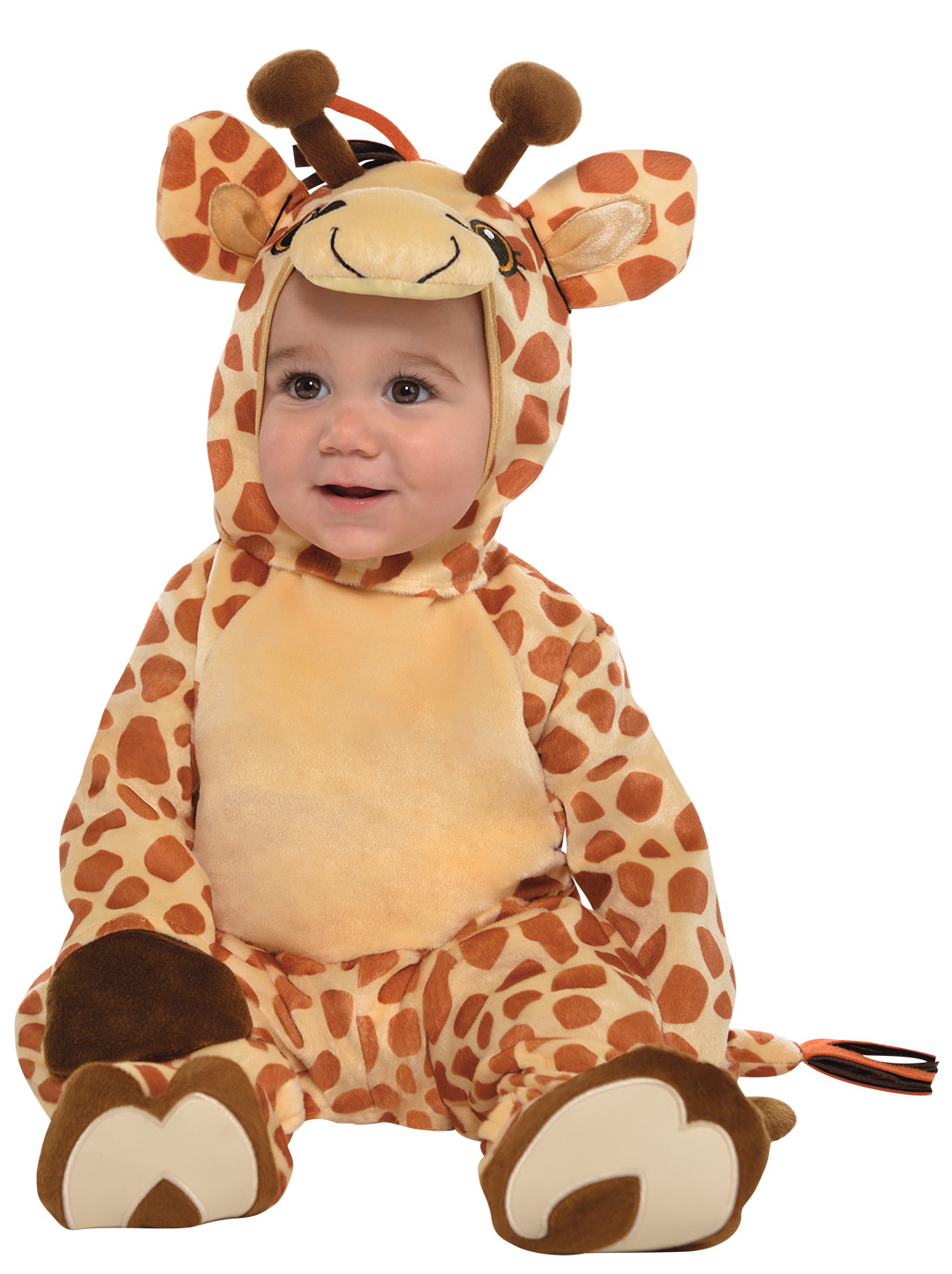 This cute, junior Giraffe costume features an all-in-one printed jumpsuit with attached hand covers and a detachable tail, pair of matching booties and an adorable character headpiece.