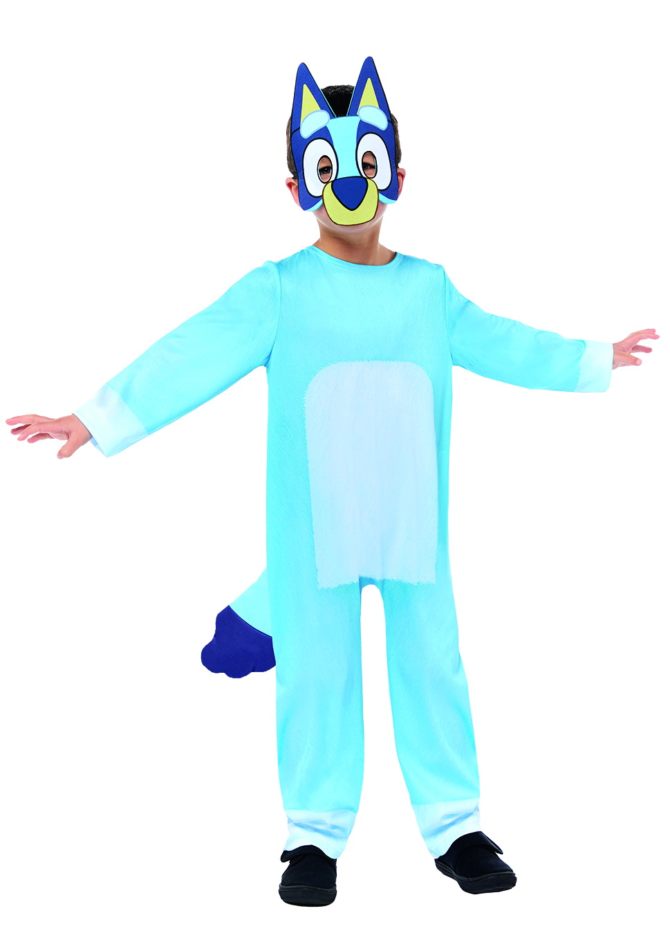 This snuggly light blue jumpsuit with Bluey’s signature tail and spotted back detailing is perfect for any fancy dress party or for playtime.