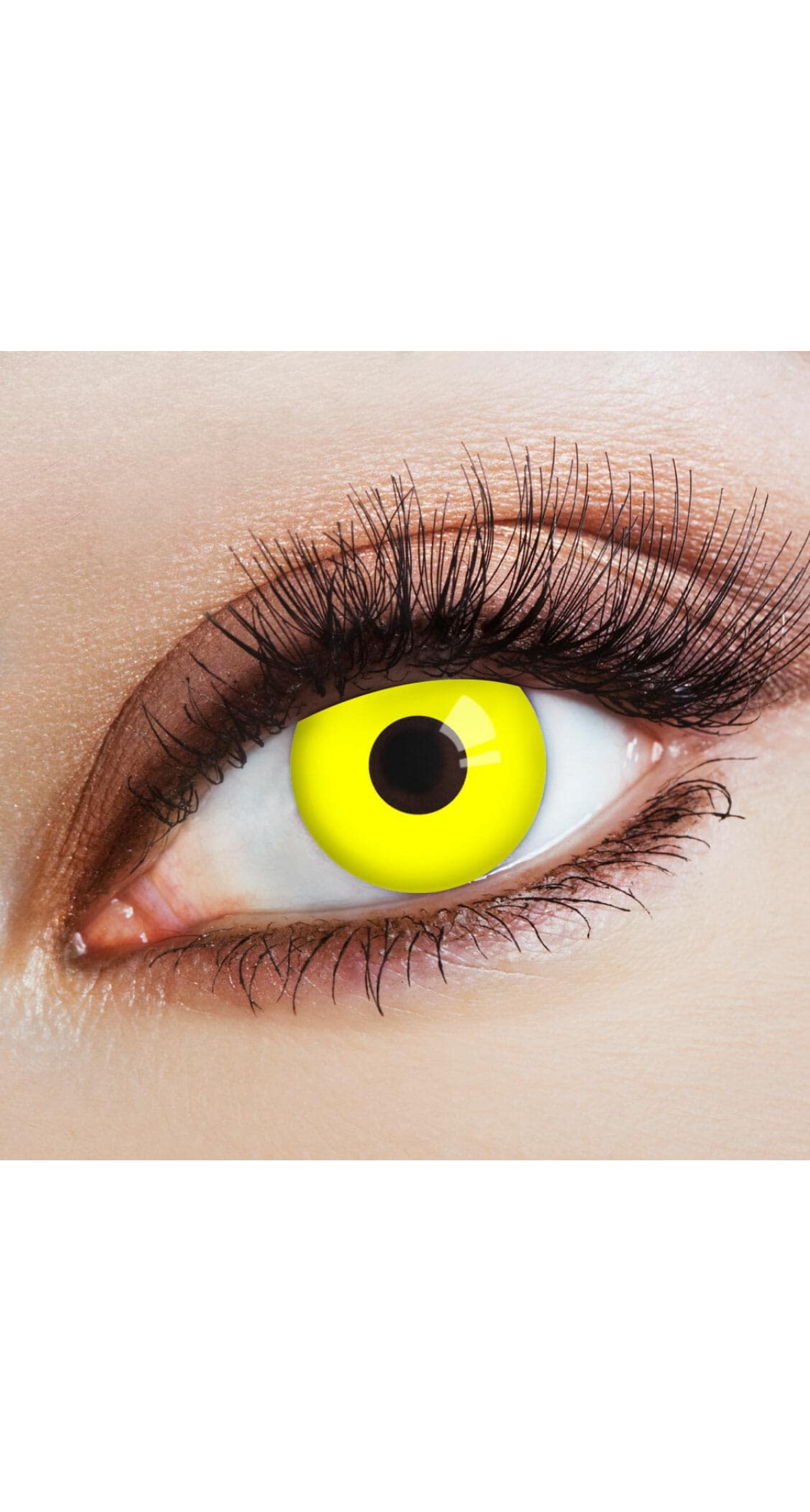 With these yellow fun lenses you will attract attention even at the most colorful carnival party. Dyeing your hair and painting your face is something anyone can do, but if the iris shines in a bright yellow while the black of the pupil forms a strong contrast, you’re sure to get everyone’s attention. You can also live out your football passion in an original way if, as a BVB fan, the club colors shine in your eyes too. The yellow fun contact lenses cover the color of your eyes and round off your carnival costume in an original way.