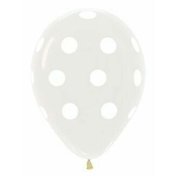 Crystal – Clear with White Polka Dots 12″ / 30cm Latex Balloon (Helium Quality)