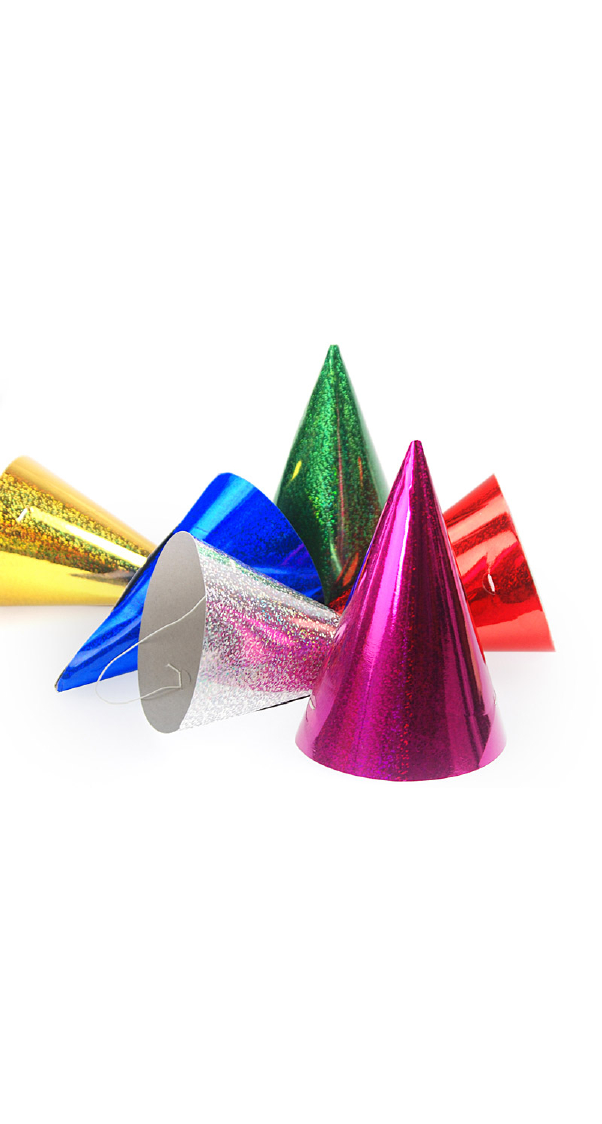 Holographic Party Hats, Mix, 16cm (1pkt / 20pc)