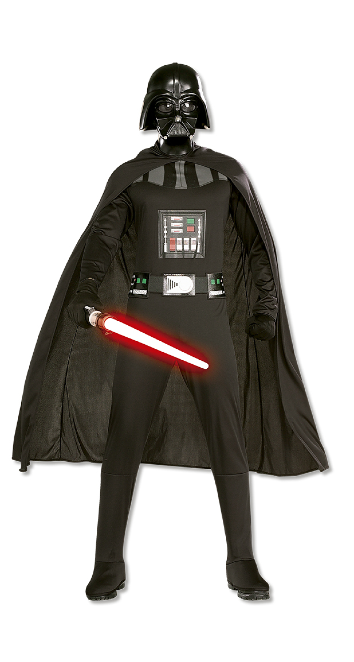 The last villain in the original trilogy, Darth Vader was born Anakin Skywalker, a Jedi drawn to the dark side by Palpatine. This iconic Lucas Film and Disney anti-hero from the Star Wars series, Darth is the father of Luke and Leia and is characterized by his black robes, cape, helmet and breathing device. Become the reigning Sith Lord of the Galactic Empire today, and may the force be with you.