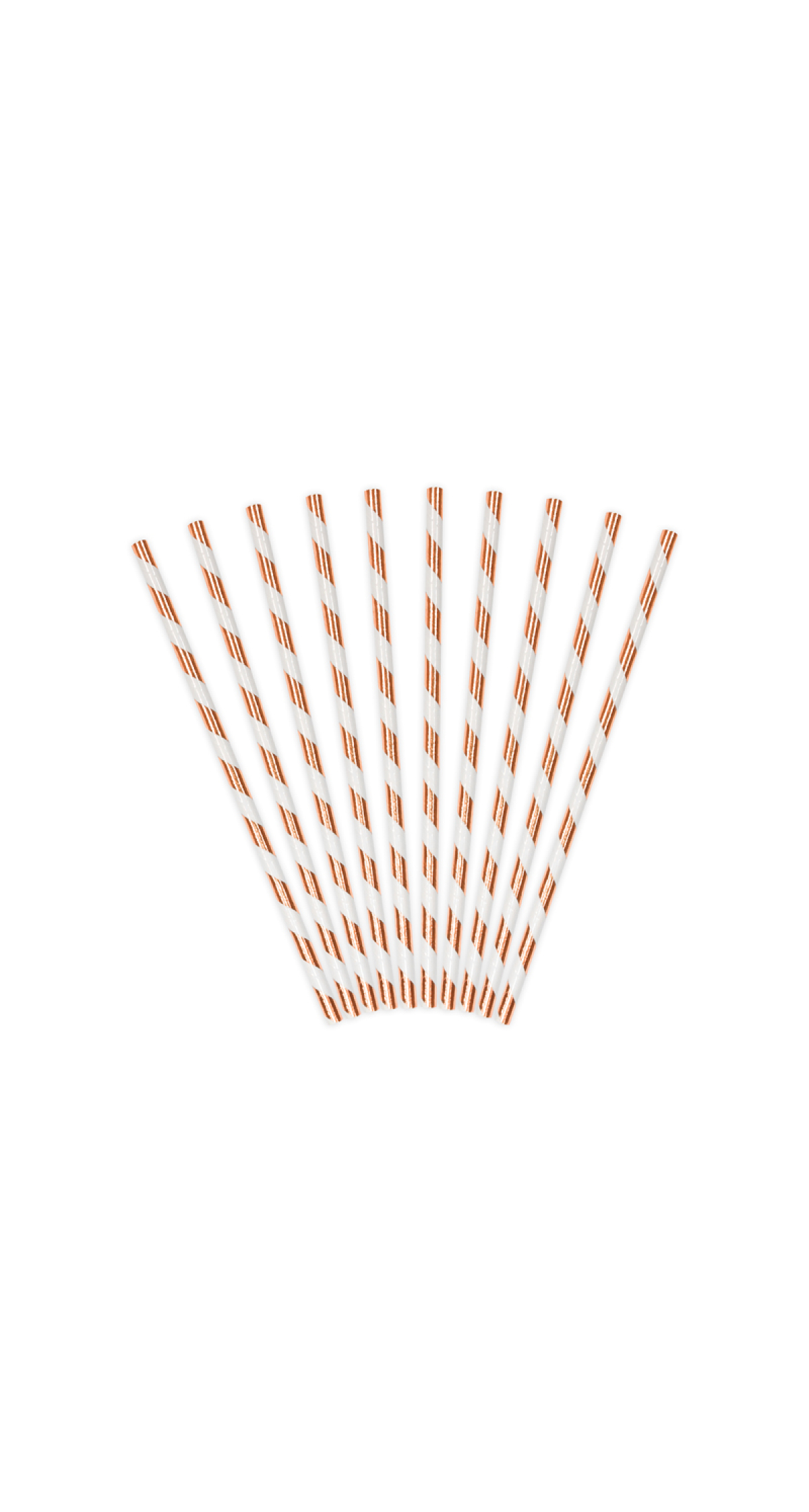 Paper straws, metallic light rose gold with slanted, white stripes, length approx. 19.5 cm. The goods cannot be sold on the German market due to the internal legal regulations of Germany. Goods comply with European Union regulations. (1 pkt / 10 pc.)