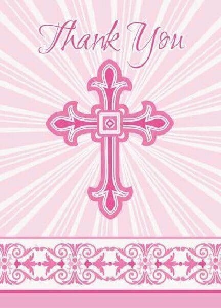Radiant Cross Pink Thank You Notes With Envelopes 10cm x 14cm – 8pk