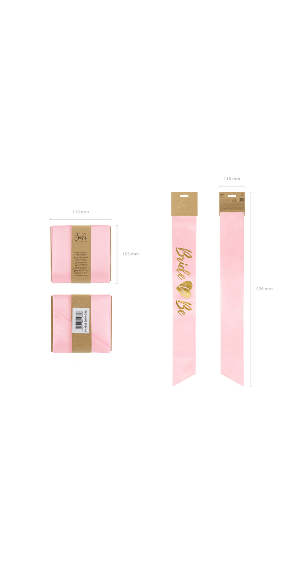 Satin sash Bride to be, light pink, width approx. 10 cm, length approx. 75 cm.